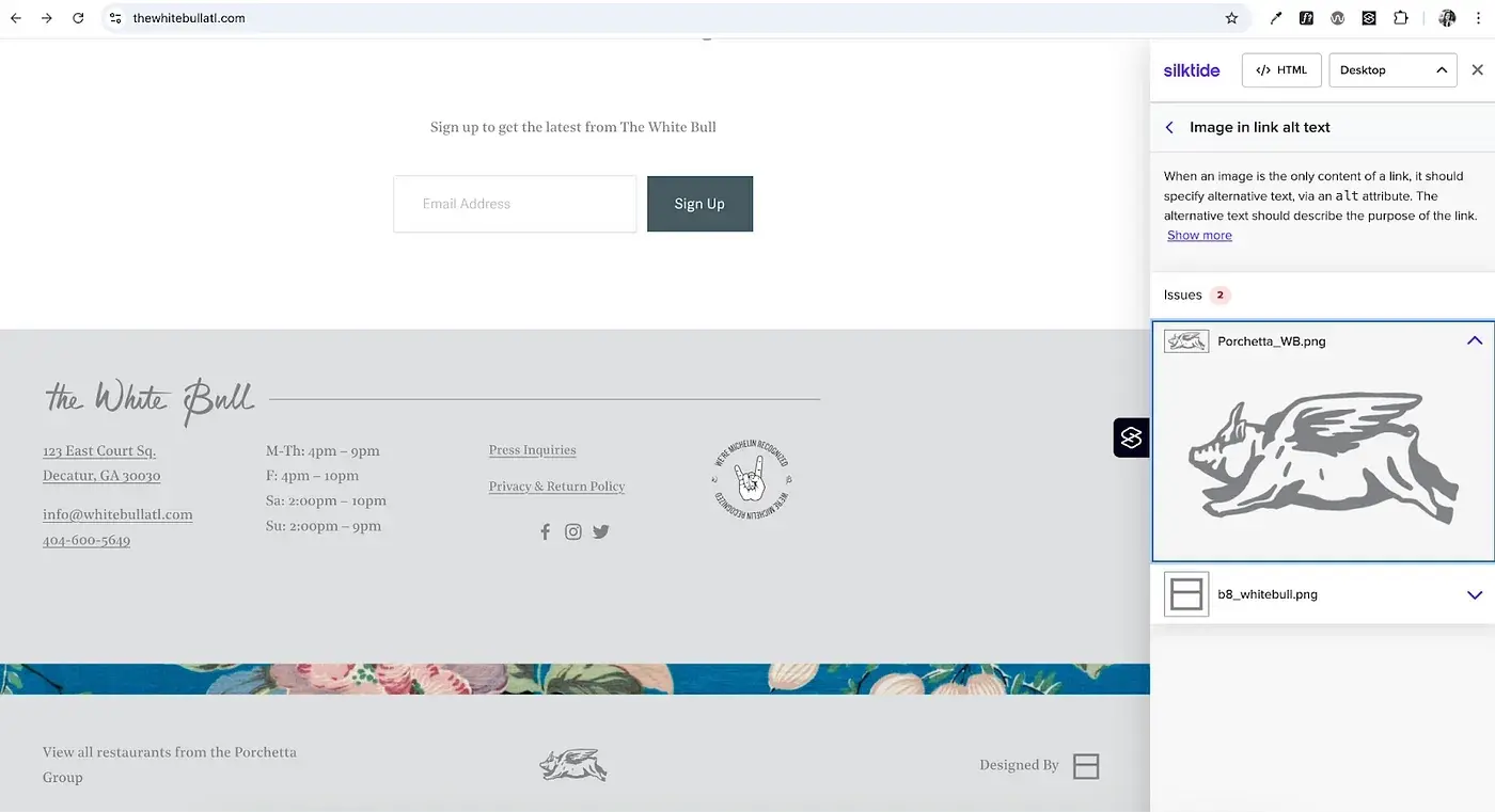 - Запустите автоматизированный инструмент тестирования доступности на вашем продукте в браузере, чтобы отметить любое изображение или SVG, которое не содержит текста alt и не помечено как декоративное
