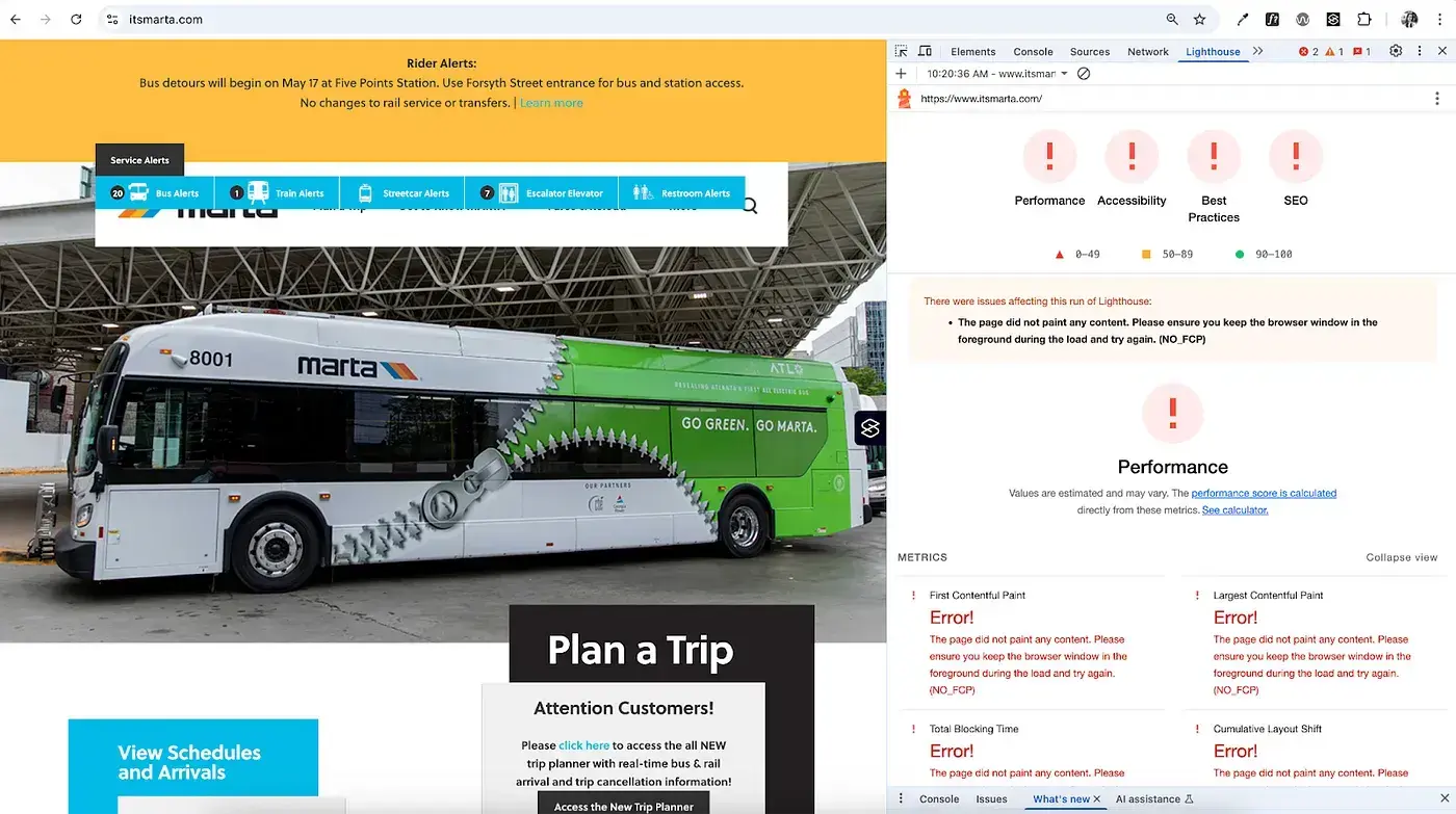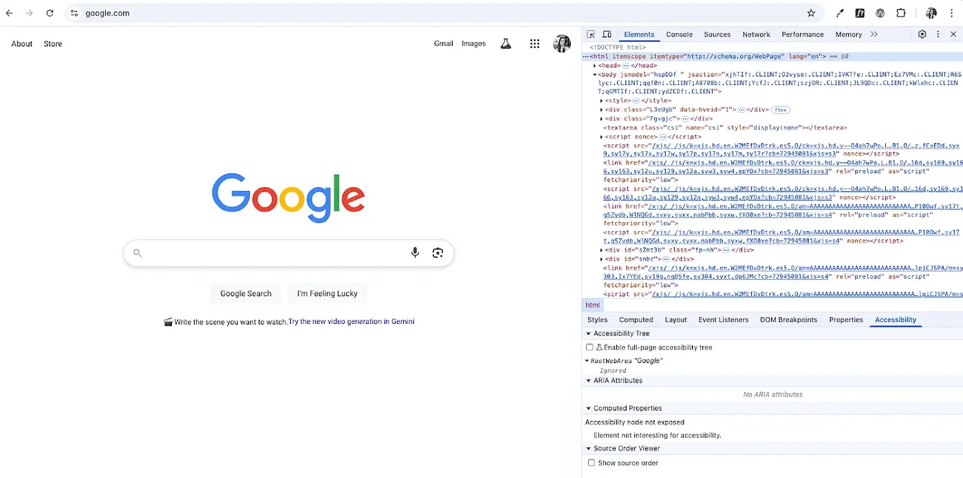 - Google Lighthouse: Эта функция бесплатна и уже включена в состав Инструментов разработчика в браузере Chrome. Чтобы открыть DevTools, достаточно нажать Option+Command+I (на Mac), а затем выбрать «Lighthouse» на панели вкладок. С помощью этого инструмента вы сможете найти информацию о проблемах с доступностью, а также о SEO и оптимизации производительности.