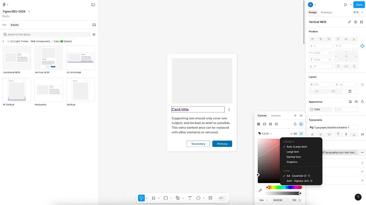 - Проверьте цвет дизайна вручную с помощью инструментов проверки контрастности, таких как WebAIM, или с помощью встроенного в Figma инструмента цветового контраста
