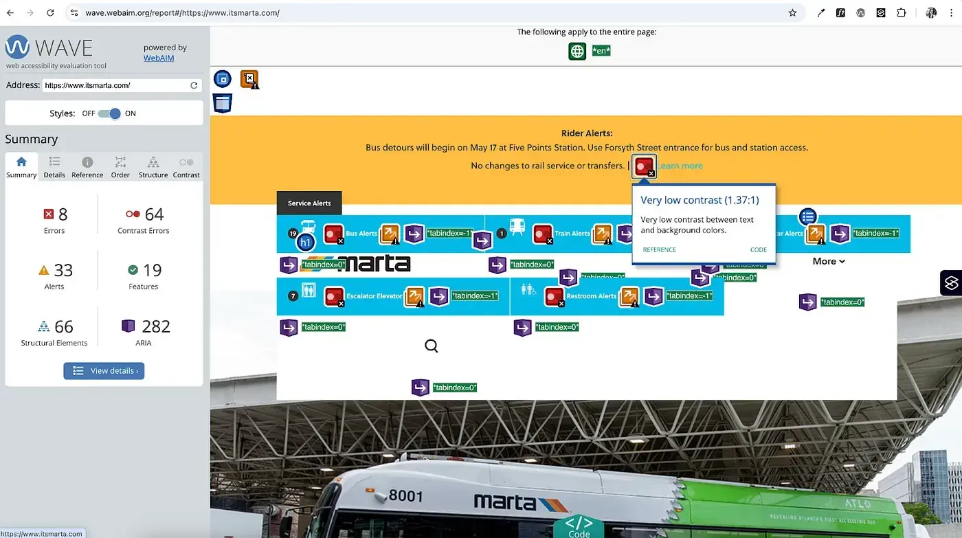- WAVE API: Это бесплатный инструмент, который сканирует и отмечает проблемы доступности на действующих веб-сайтах. Он выводит краткую сводку, позволяющую понять, насколько доступен сайт, а также предоставляет подробную информацию о проблемах для их устранения.