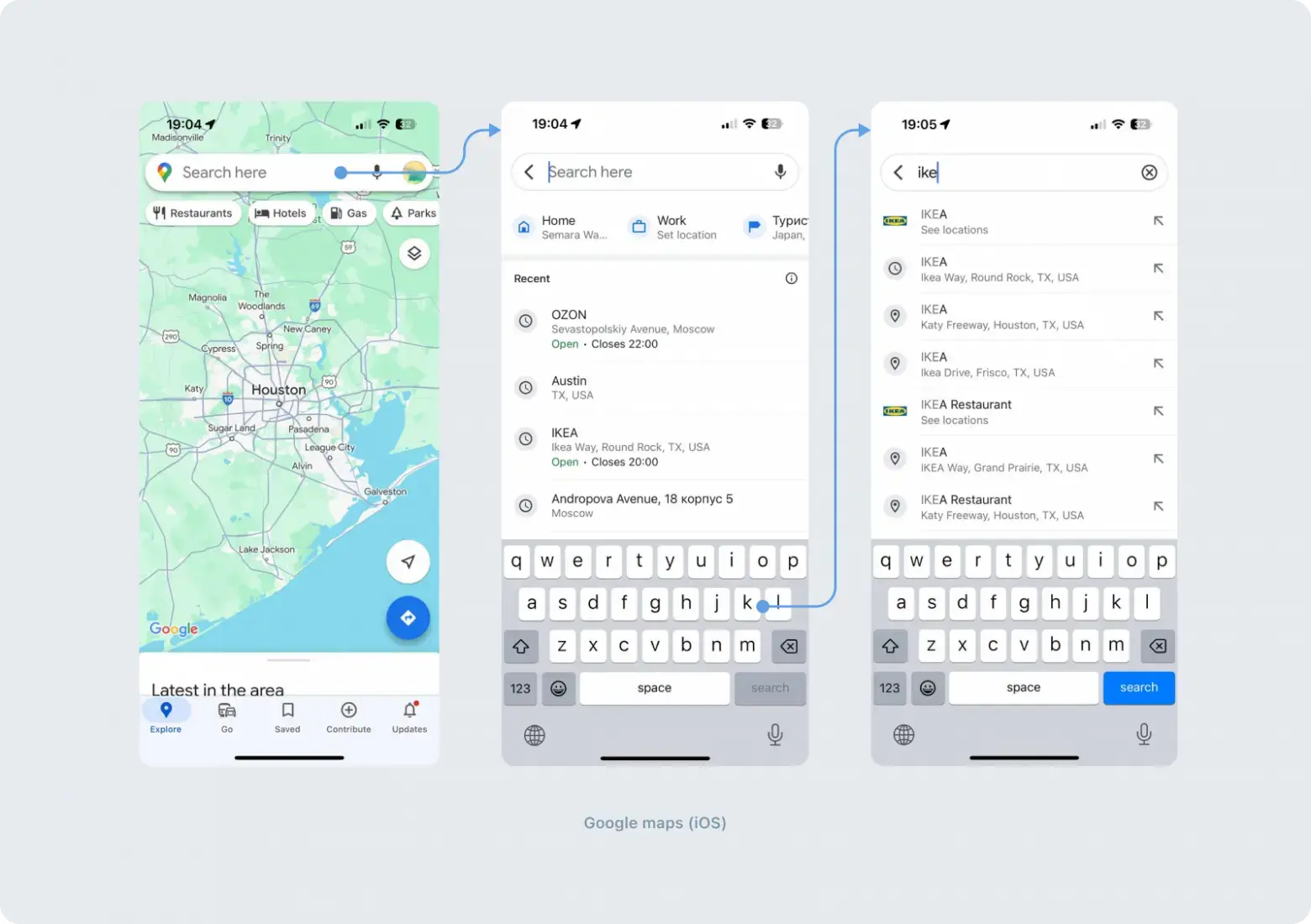 Пример глобального поиска можно найти в приложении Google Maps, где поиск является основным способом навигации. Через поле поиска можно найти все, что вам нужно —ближайшую заправку, кафе, ресторан или достопримечательность.