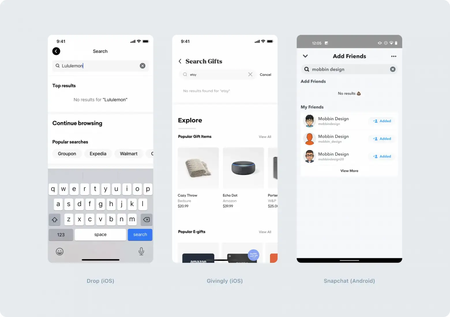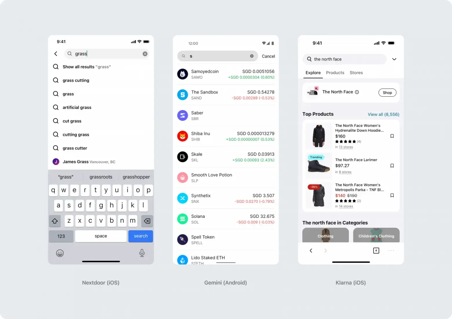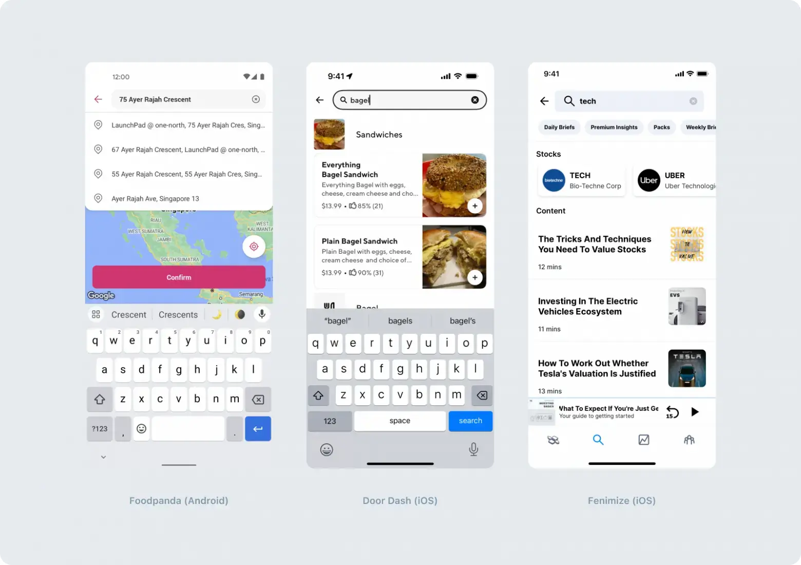 Хорошо спроектированные мобильные интерфейсы следуют основному принципу удобства использования: уважайте усилия пользователя. Сохраненные, недавние и популярные запросы делают это, облегчая выбор из предыдущих поисков вместо повторного ввода тех же ключевых слов или критериев поиска.