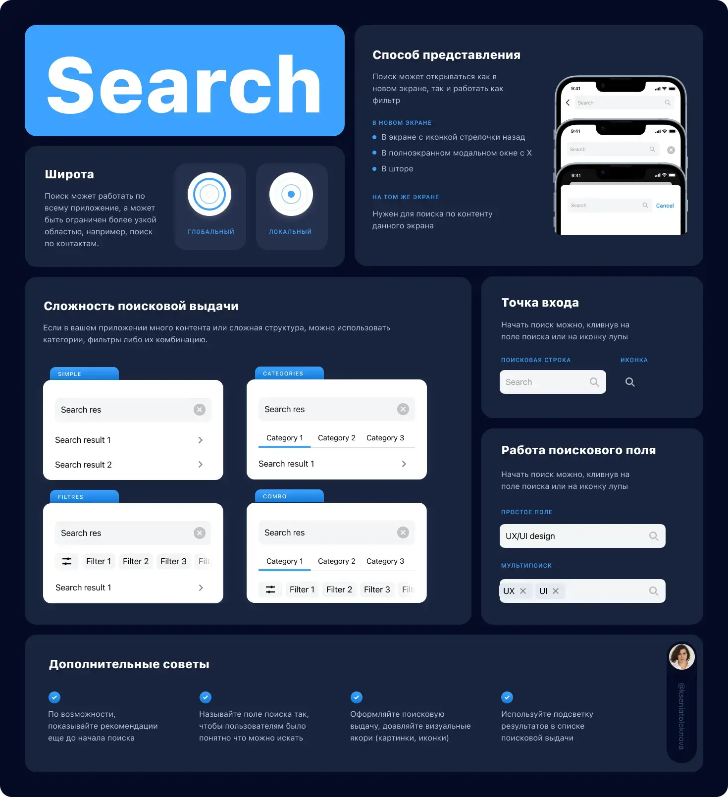 Поиск — гибкий инструмент. Он может работать совершенно по-разному в зависимости от контекста. Чтобы лучше разобраться в теме, мы выделили перечень принципов, по которым может работать поиск.