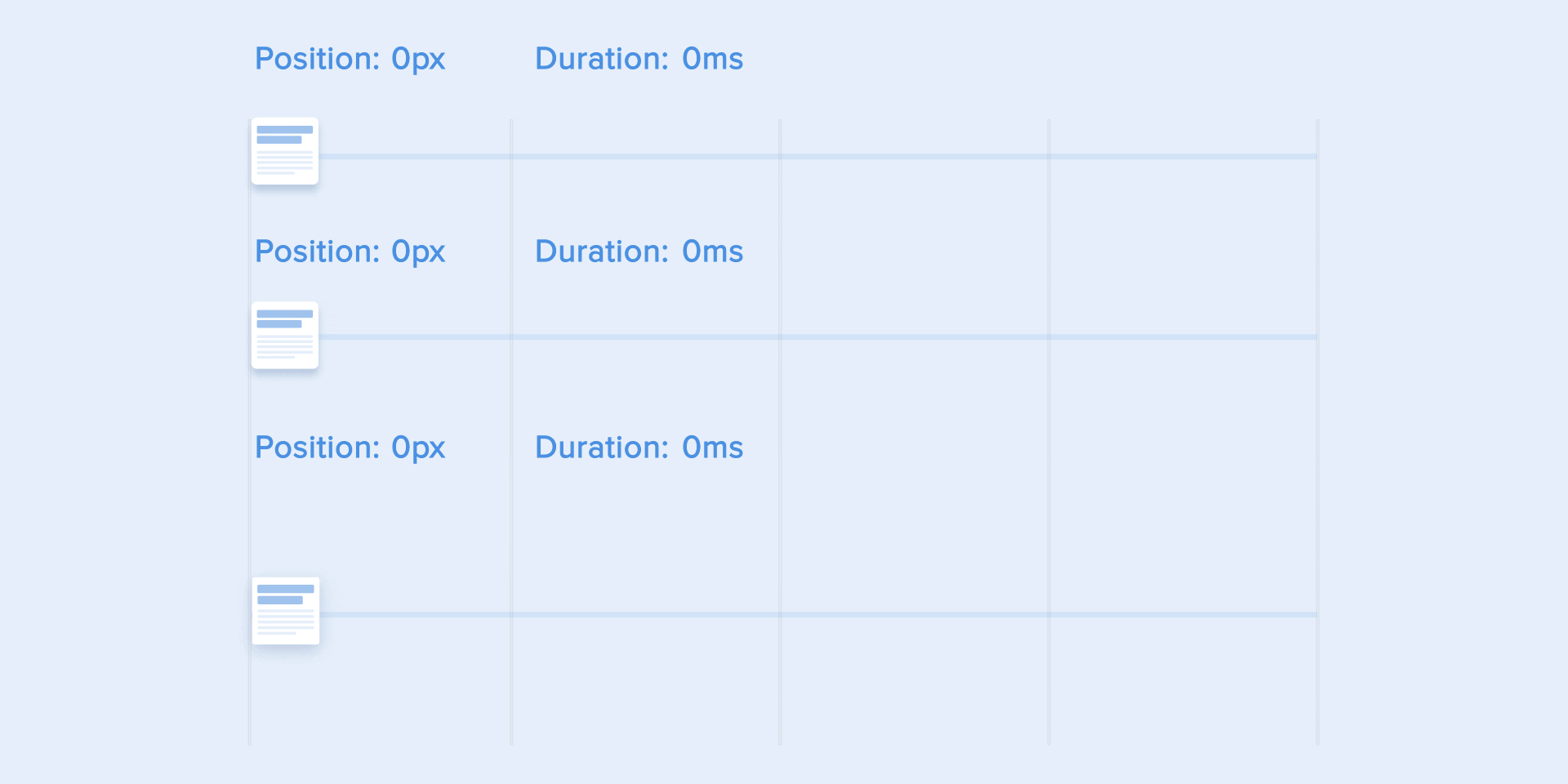 Когда элементы меняют свое состояние или положение, длительность анимации должна быть достаточно медленной, чтобы пользователи успели заметить изменения, но в то же время достаточно быстрой, чтобы заставлять пользователя ждать.