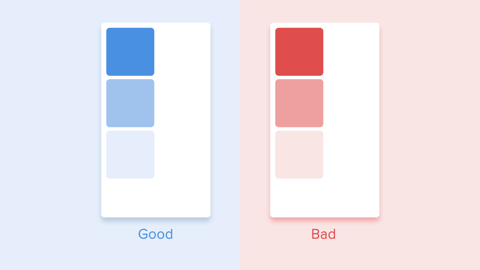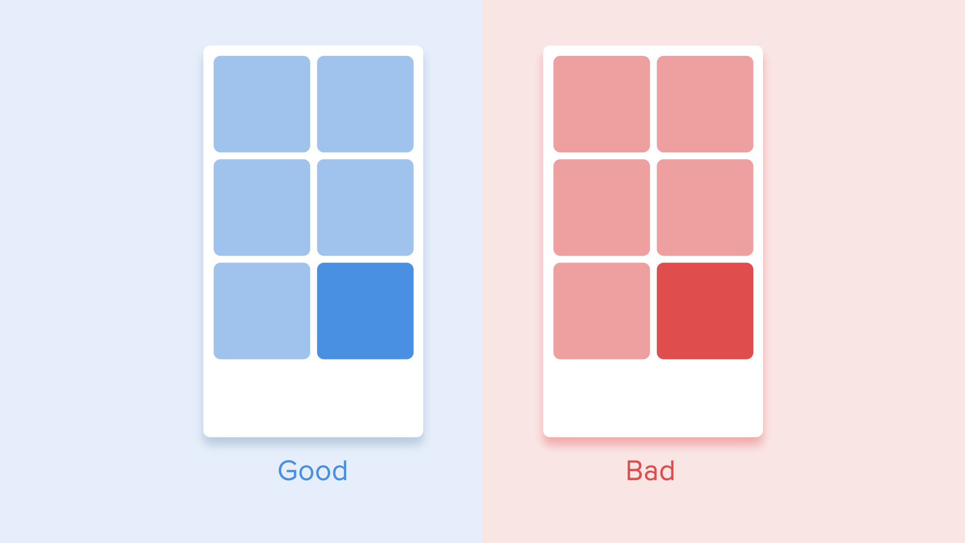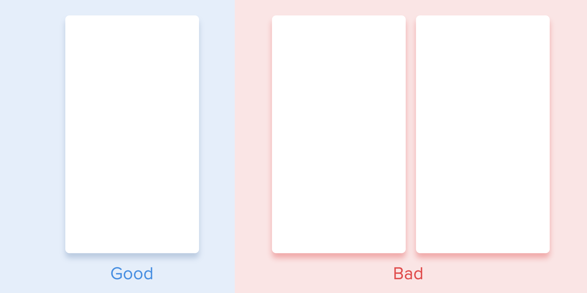 В этом случае появление всех карточек воспринимается как единый поток, который направляет внимание пользователя в одном направлении, а именно сверху вниз. Если не соблюдать порядок, внимание пользователя будет рассеиваться. Появление всех элементов сразу также будет выглядеть плохо.