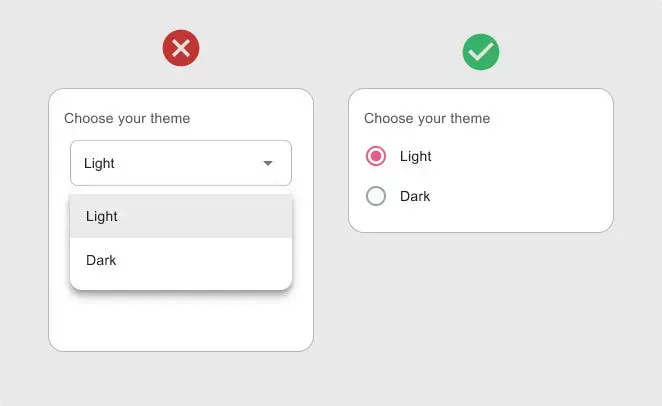 Нет необходимости добавлять выпадающее меню всякий раз, когда пользователям нужно выбрать один из доступных вариантов.