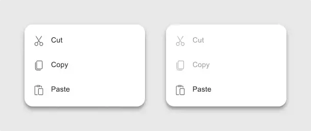 - Важно визуально отграничить неактивные опции от активных. Их можно выделить серым цветом или уменьшить их непрозрачность. Так пользователи сразу поймут, что эти элементы некликабельны.