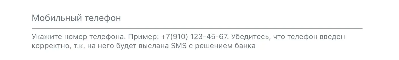 Дополнительная текстовая строка — самый частый спутник поля ввода. Используется, если нужно дать пользователю больше информации.