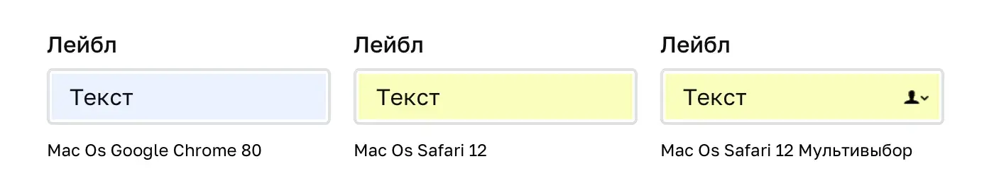 Браузеры научились помогать людям быстрее и проще взаимодействовать с полями ввода. Они могут добавлять различные дополнительные элементы управления внутрь поля. Важно помнить об этом, потому что такие дополнения могут влиять на размер поля ввода и перекрывать его элементы.