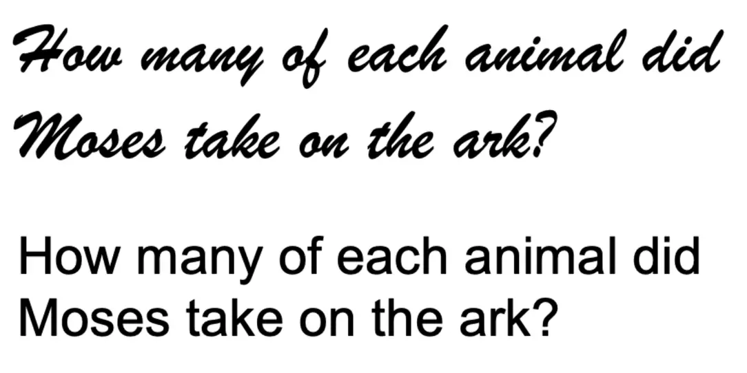 В другом исследовании учёные Хёнджин Сонг и Норберт Шварц задали людям простой вопрос: "Сколько животных каждого вида Моисей взял на ковчег?" Половине участников вопрос был представлен шрифтом Arial, другой половине — шрифтом Brush Script.