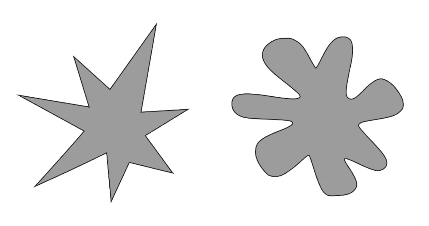 Эти дизайнерские решения имеют значение. Цвет и выбор шрифта — это не просто эстетика. Они действительно влияют на людей.Насколько далеко это можно продвинуть? Что ещё возможно? Для ответа на этот вопрос я хочу познакомить вас с Кики и Бубой.Вот изображение Кики и Бубы. Как вы думаете, который из них — Кики, а который — Буба?