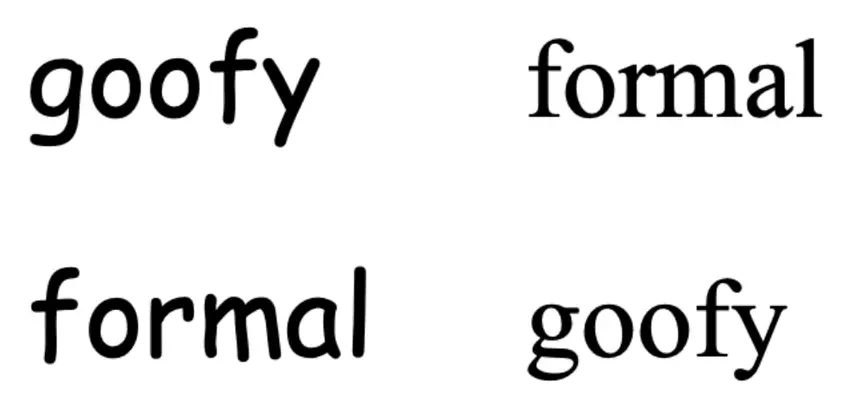 Аналогичное явление наблюдается и с другими примерами: слово "goofy" (в переводе «дурашливый») в Comic Sans и "formal" («официальный») в Times New Roman воспринимаются быстрее, чем если поменять шрифты местами.