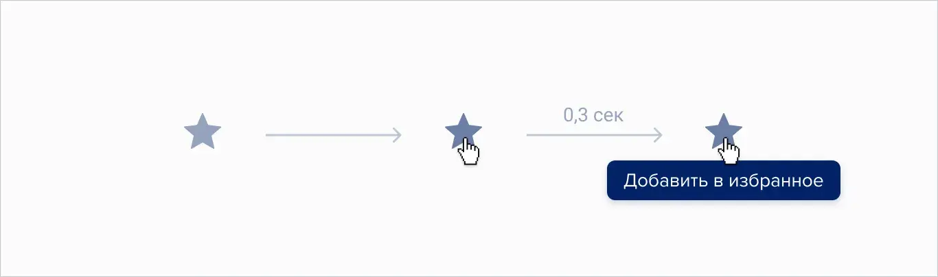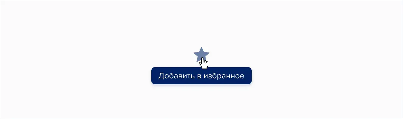 Можно изменить способ вызова на клик, но это не универсально. Клик на иконке часто бывает занят другим действием. Рассмотрим на примере иконки “Добавить в избранное”. По ховеру будет всплывать подсказка, по клику будет происходить действие добавления в избранное.