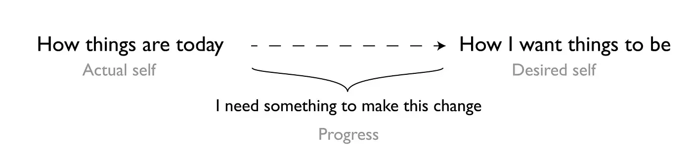 Модель Работы как Прогресс предполагает (гипотезирует), что потребитель будет искать, покупать и использовать продукт впервые, когда существуют различия между тем, как вещи обстоят сегодня, и тем, как они хотят, чтобы они были в будущем (вспомните цитату Ревлона "в аптеке мы продаем надежду..." и "Цель" по Пауэрсу). Работа как Прогресс касается желания потребителя использовать рынки с целью разрешения несоответствия в "Цели".