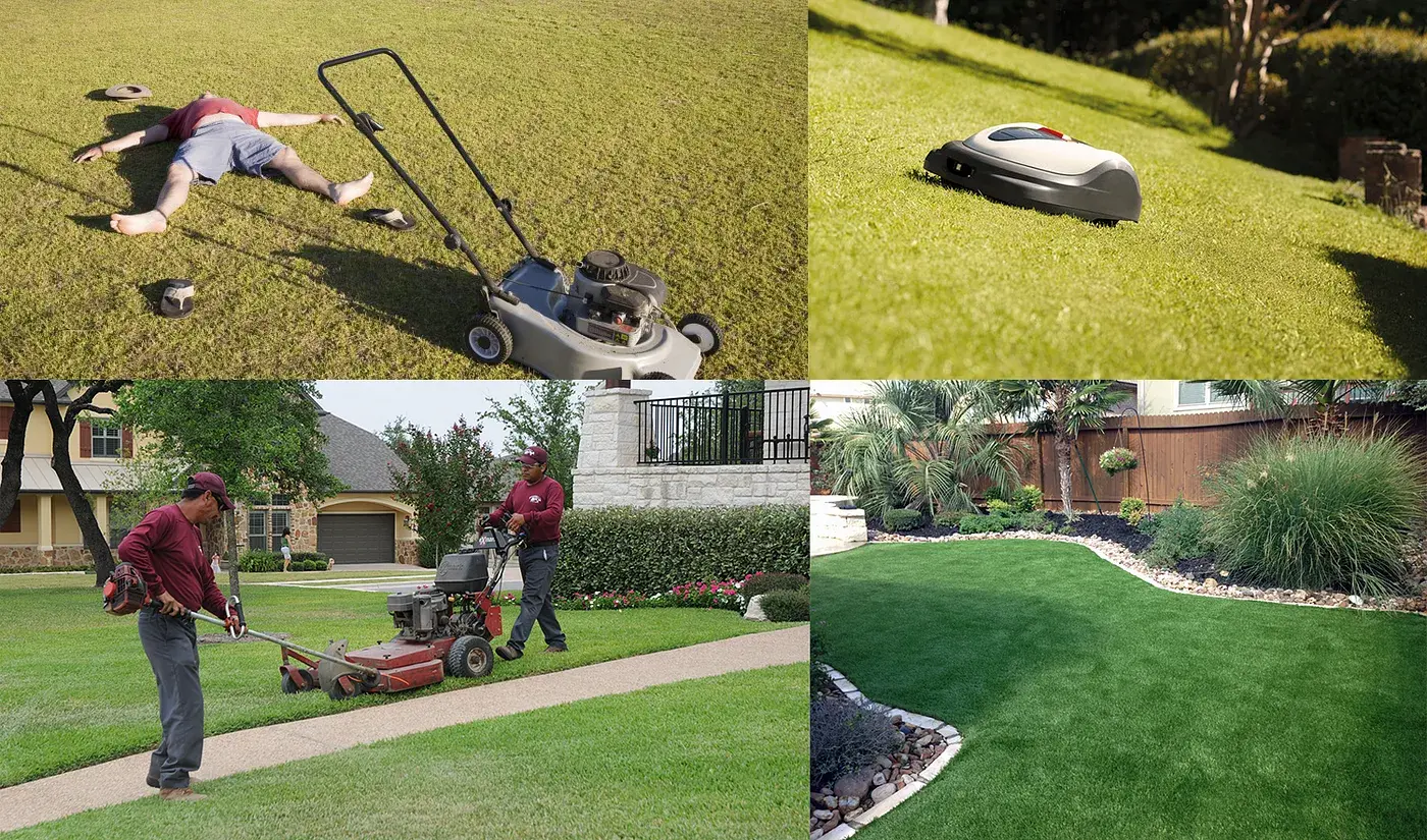 На самом деле, желание избегать выполнения деятельности «косить траву» является причиной появления таких инноваций, как услуги по уходу за газонами, автоматические газонокосилки и искусственная трава (фейк-грас). Возможно, в будущем будет создана ГМ-трава, которую не придется косить вовсе.