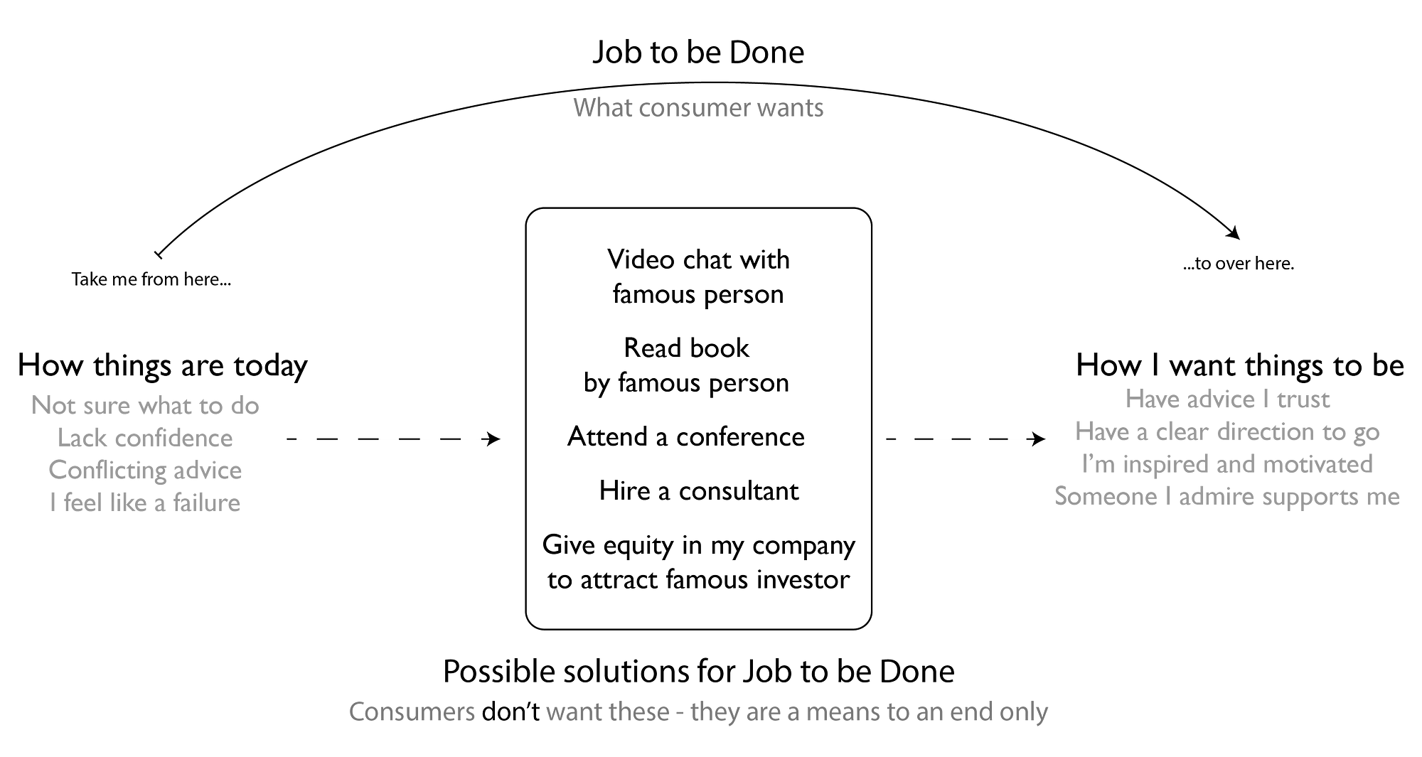 Клиенты покупают продукты для «выполнения работы» против Потребители покупают продукты, чтобы произвести изменения (и, идеальным образом, не должны «делать работу»).
